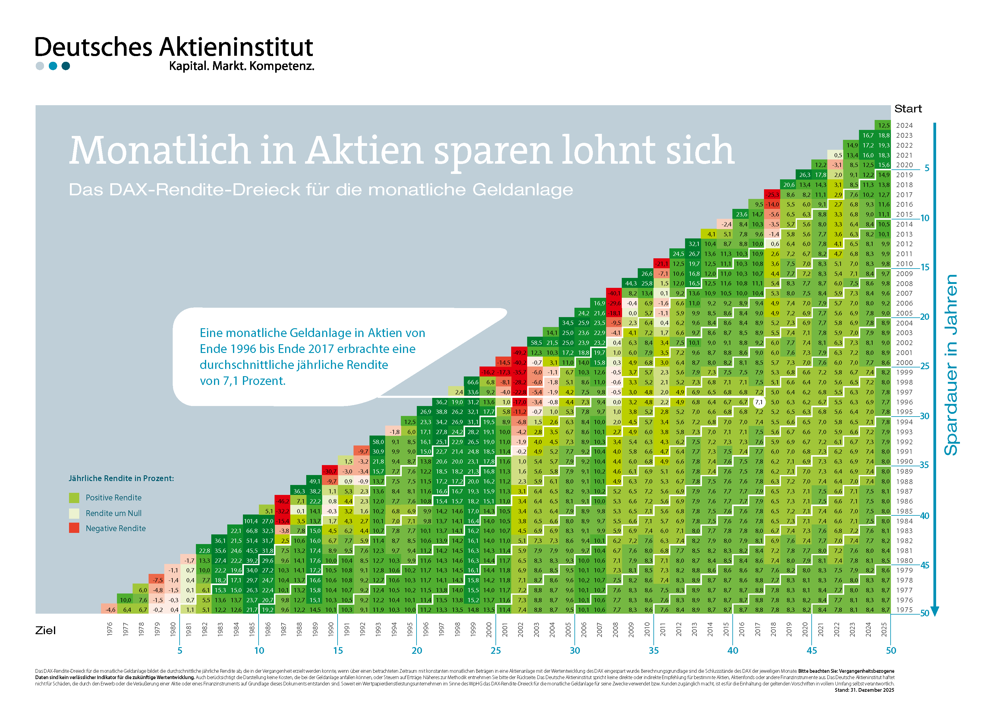 Wer einen Aktien-Sparplan einrichtet, muss verkraften können, dass regelmäßig Geld von seinem Konto in die Aktien fließt. Es ist wichtig, sich bei der Sparrate nicht zu übernehmen. Bei einigen Brokern lässt sich ein Aktien-Sparplan zum Glück schon ab einer Rate von 25 Euro einrichten.