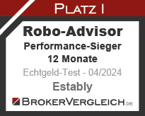 Estably konnte sich bereits im Jahr 2021 gegen die Konkurrenz im Echtgeldtest durchsetzen und wie auch in der Jahresbilanz 2023 zwei erste Plätze in den Kategorien „Performance“ und „Rendite-Risiko-Verhältnis“ erzielen.