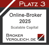 Günstige Gebühren (bis hin zur monatlichen Flatrate und Sparplänen ab einem Euro), ein ausgeweitetes Angebot und einfaches Traden per App – das macht Kunden offensichtlich glücklich. Im Feld der Online-Broker bzw. Neo-Broker hat Scalable Capital seine Hausaufgaben gemacht und in der Brokerwahl 2025 einen guten dritten Platz erzielen können. Glückwunsch!