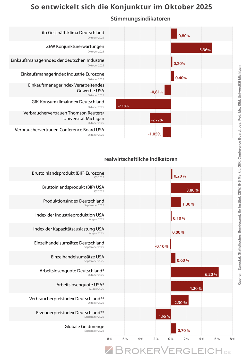 Der Unterschied zwischen realwirtschaftlichen Indikatoren und Stimmungsindikatoren besteht also darin, dass die einen auf Grundlage erhobener Daten eine konkrete Entwicklung wiedergeben, während die anderen Befragungen nutzen, um ein Stimmungsbild zu erstellen.
